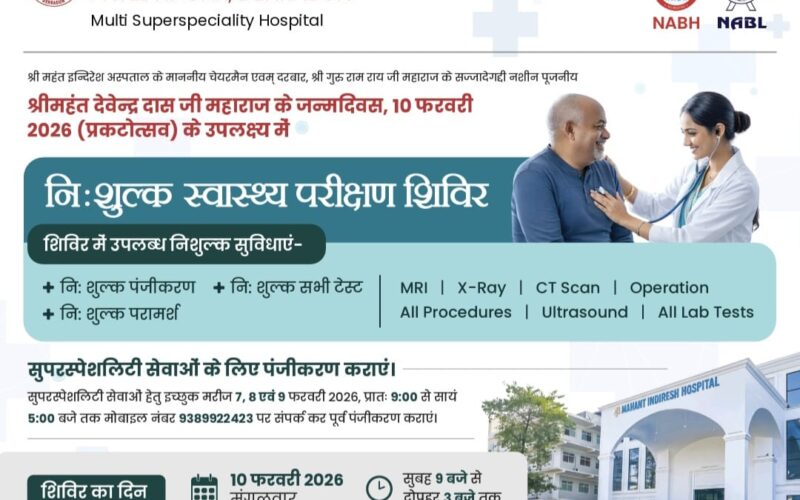श्री महंत इन्दिरेश अस्पताल में 10 फरवरी को विशाल निःशुल्क स्वास्थ्य शिविर का आयोजन।