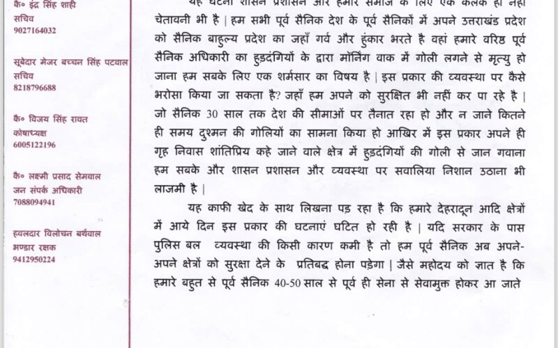 देहरादून में रोड रेज की घटना में ब्रिगेडियर (से.नि.) मुकेश जोशी की मौत, पूर्व सैनिकों में आक्रोश