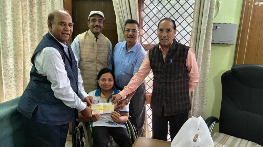 उत्तराखंड की होनहार बैडमिंटन खिलाड़ी एवं विश्व पैरा बेडमिंटन चैम्पियनशिप में प्रतिभाग करने जा रही दिवंयाग खिलाड़ी नीरजा को सिंचाई विभाग, उत्तराखंड से सेवानिवृत्त इंजिनियर  नरेंद्र सिंह ने अपने जन्मदिन के अवसर पर रुपये 25000/- की सहायता प्रदान की।