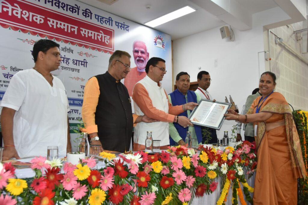 सीएम पुष्कर सिंह धामी ने निवेशकों को किया सम्मानित।