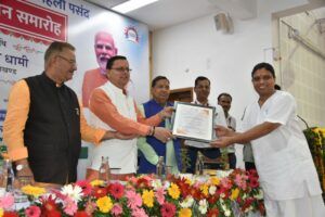 मुख्यमंत्री श्री पुष्कर सिंह धामी ने मुख्यमंत्री आवास स्थित मुख्य सेवक सदन में आयोजित उत्तराखण्ड निवेशक सम्मान समारोह के दौरान निवेशकों को प्रतीक चिन्ह तथा प्रशस्ति पत्र से सम्मानित किया गया।