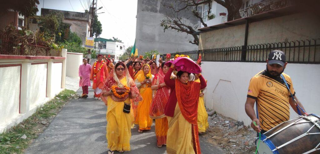 आज नेशविला रोड में जन कल्याण के लिए समस्त क्षेत्रवासियों व महिला कल्याण समिति के द्वारा आयोजित श्रीमद् देवी भागवत कथा से पूर्व सैकड़ों की संख्या में पीत और रक्त वस्त्र में सिर पर कलश लिए हुए दुर्गा की जय मैया की जय भजन गायन करते हुए गढ़वाल सभा भवन मां जगदंबा का अभिषेक के बाद पूजन और कथा का शुभारंभ हुआ