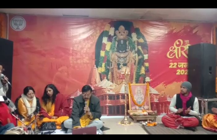 इस दौरान कार्यक्रम की जानकारी देते हुए प्रदेश कर्यालय सचिव कौस्तुभानंद जोशी ने कहा, श्री राम आगमन के इस युग युगांतकारी क्षणों की अनुभूति के लिए आज प्रदेश मुख्यालय में श्री हनुमान चालीसा के 11 पाठ और भजन संध्या का आयोजन किया । साथ ही 5 शताब्दियों के बाद प्रभु के अपने धाम पधारने की खुशी में दीपक से कार्यलय परिसर को प्रकाशवान किया गया।