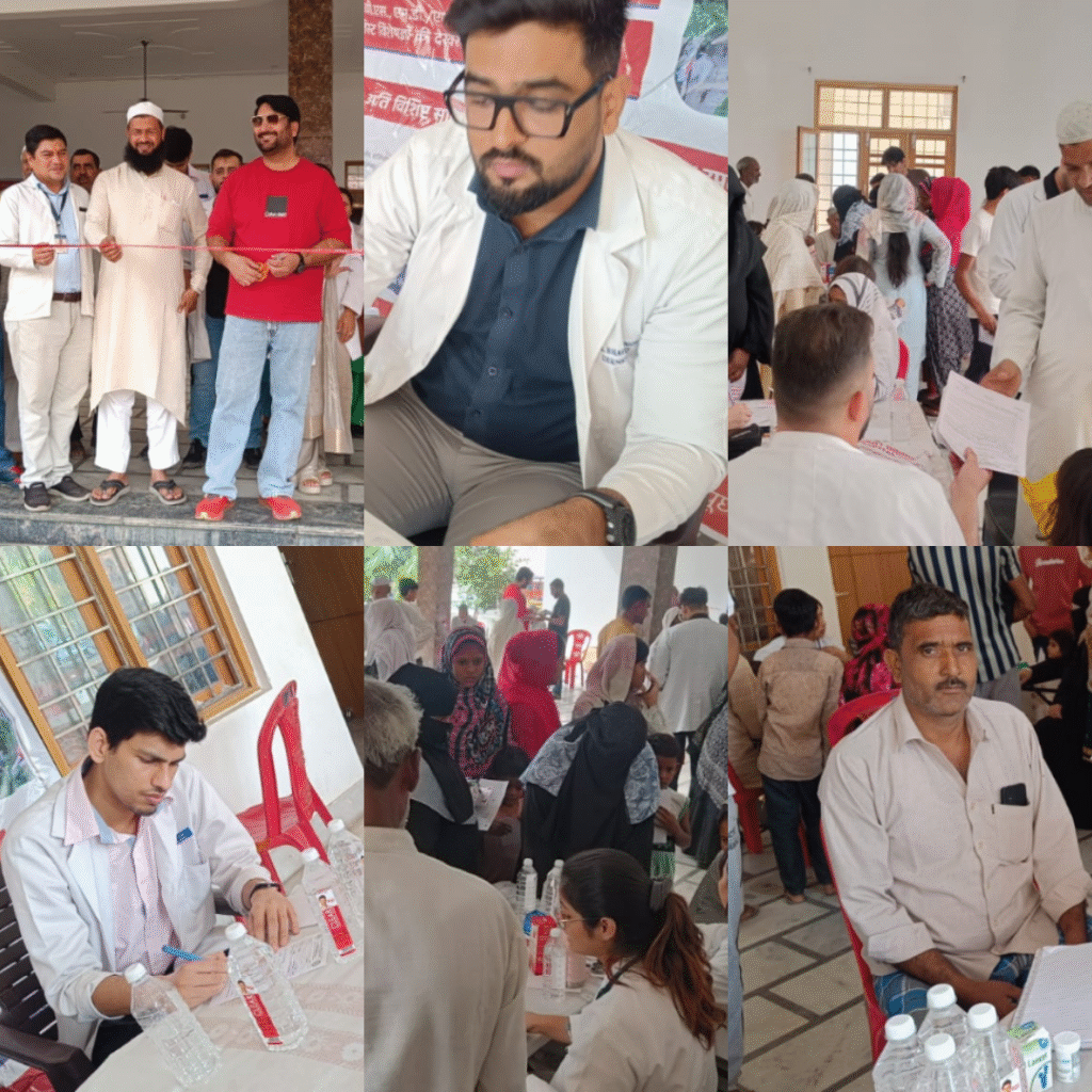 भूकंपुर गांव लंढौरा में इन्दिरेश अस्पताल का निःशुल्क स्वास्थ्य शिविर।