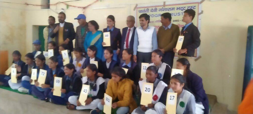 वही पार्वती देवी गंगाराम भट्ट ट्रस्ट के कालिका प्रसाद काला और पूर्व निदेशक पुष्पा मानष ने कहा हमारा उद्देश्य है समाज का विकास करना है 513 बच्चों की सहायता कर चुके हैं जिनके माता-पिता नहीं है जिसे इन बच्चों को आगे बढने मौका का मिलता है पोखरी ब्लाक के विद्यालयो से हमे 133 बेटियों के आवेदन प्राप्त हुए। इनमें से 91 मातृ पितृ विहीन मेधावी बेटियों को छात्रवृत्ति के लिए चुना गया है और बनियान भी वितरण किया गया।