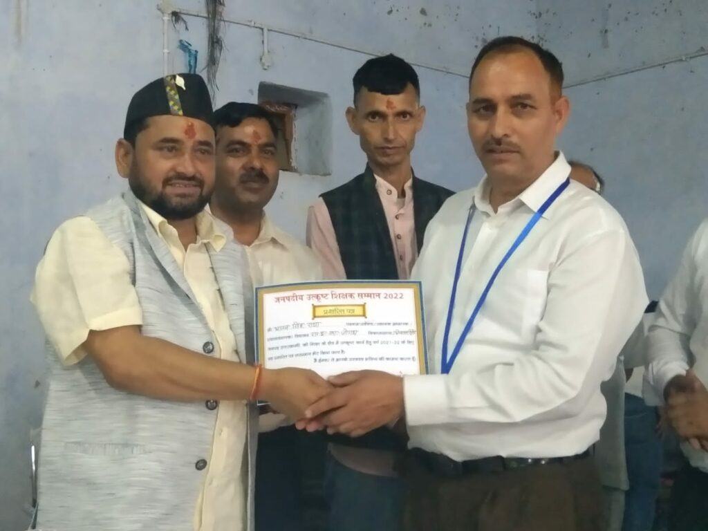 राजकीय इंटर कालेज जगोथ के प्रभारी प्रधानाचार्य जनपदीय उत्कृष्ट शिक्षक सम्मान से सम्मानित