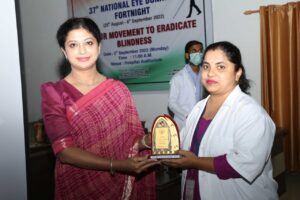 ‘नेत्रदान की शपथ लें हमने ली आप भी लें इसे अपने परिवार की परंपरा बनाएं‘ शीर्षक पर अधारित कार्यक्रम में डाॅक्टरों व मेडिकल छात्र-छात्राओं ने बढ़चढ़ कर भागीदारी की। डाॅ प्रियंका गुप्ता, नेत्र सर्जन ने कार्यक्रम का शुभारंभ करते हुए अभिभाषण दिया। नेत्र रोग विभाग की विभागाध्यक्ष एवम् नेत्रदान केन्द्र की प्रभारी डाॅ तरन्नुम शकील ने नेत्रदान के महत्व पर प्रकाश डाला। नेत्रदाताओं के परिजनों को स्मृति चिन्ह देकर सम्मानित किया गया।