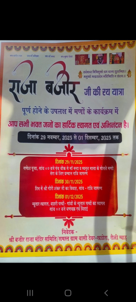अनुष्ठान के सफल आयोजन पर बजीर देवता मंदिर समिति ने सभी ग्रामवासियों और सहयोगियों का आभार व्यक्त किया।