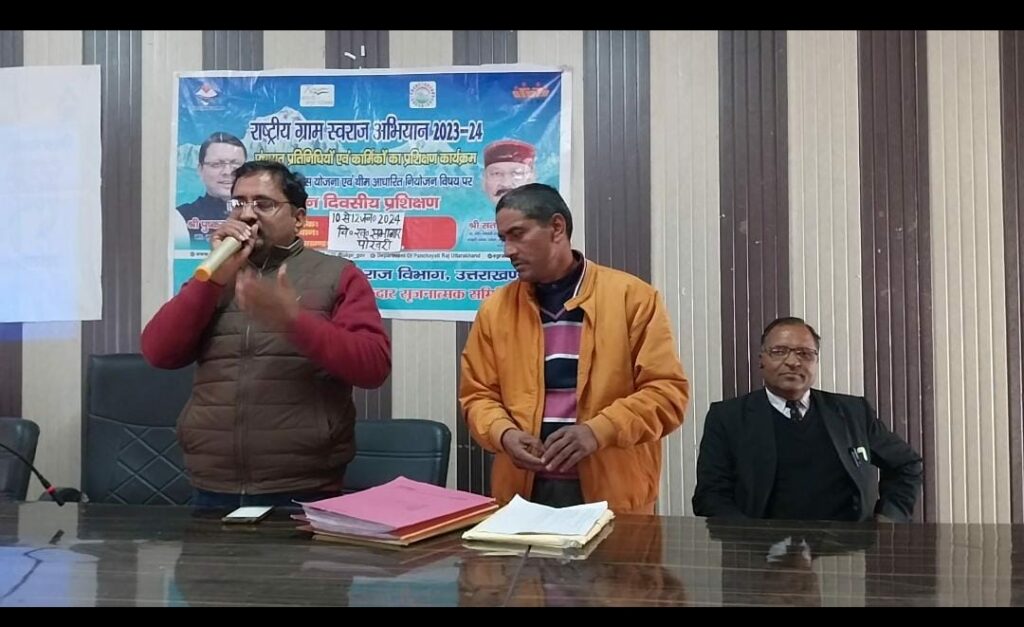 चमोलीःराज्य स्तरीय स्वराज अभियान के तहत पोखरी व्लॉक में पंचायत प्रतिनिधियों एवं कर्मिकों के तीन दिवसीय प्रशिक्षण कार्यक्रम का समापन्न हो गया है। कार्यक्रम में विभिन्न गांवों के दो दर्जन से अधिक प्रधानों व क्षेत्र पंचायत सदस्यों ने प्रतिभाग किया। जनप्रतिनिधियों के क्षमता विकास व प्रशिक्षण के दौरान त्रिस्तरीय पंचायतों के सम्पूर्ण विकास के लिए 9 थीमों के संबध में मास्टर ट्रेनर सतीष सती ने विस्तार पूर्वक जन प्रतिनिधियों को जानकारी दी।